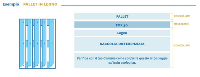 nel caso degli imballaggi destinati al canale commerciale/industriale, è di indicare il codice identificativo del materiale (ovvero FOR 50 per il legno).